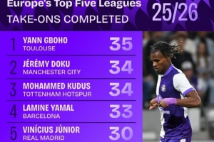 體育資訊11月21日訊 五大聯賽戰火即將重燃,數據機構squakwa也統計了本賽季至今的五大聯賽球員成功過人次數情況,圖盧茲新星揚·博霍居首。
